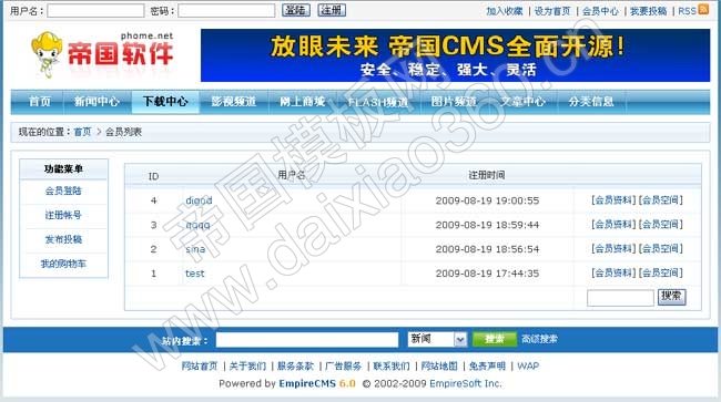帝國CMS 6.0功能解密之會員列表多樣式 ... [更多詳細(xì)]