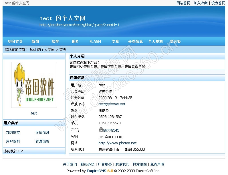 帝國CMS 6.0功能解密之會員空間自定義單頁面 ... [更多詳細(xì)]