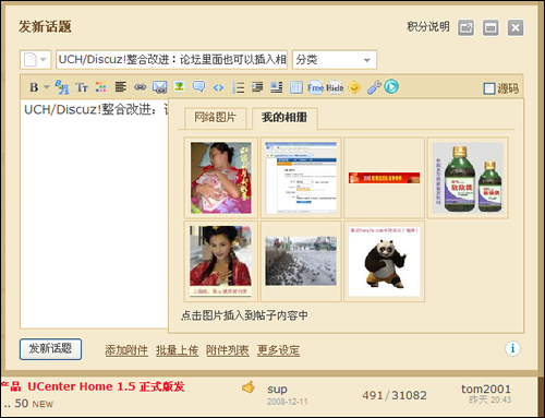 Discuz!在論壇主題中快速插入UCHome相冊圖片 ... [更多詳細]
