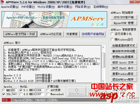 APMServ一鍵快速搭建Apache+PHP+MySQL+Nginx+Memcached+ASP運行平臺教程 ... [更多詳細]