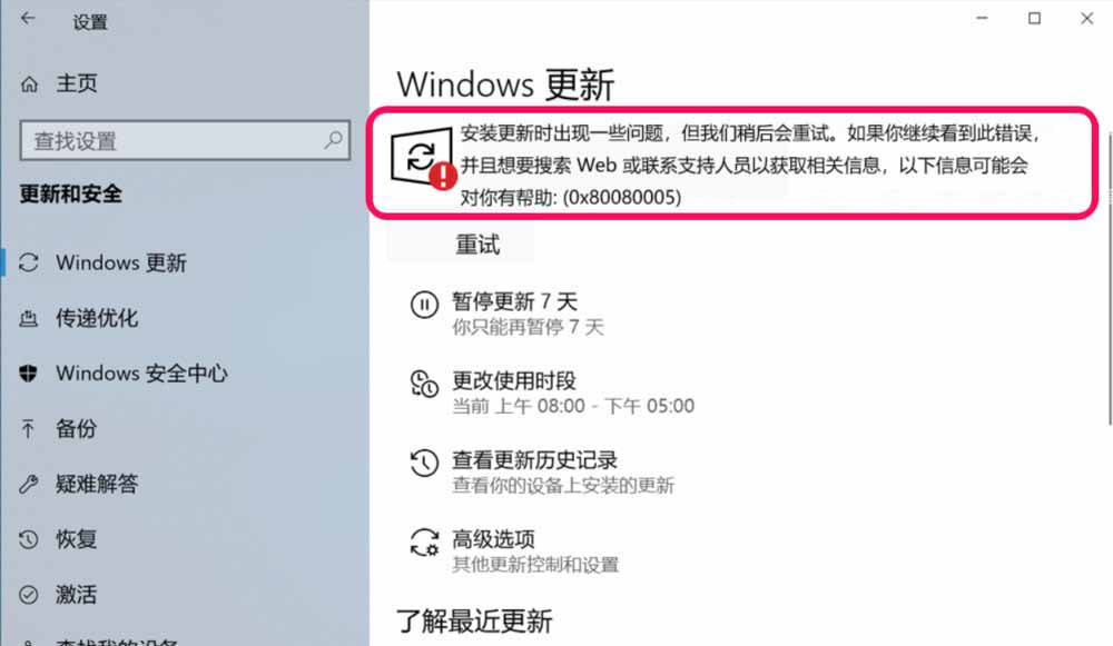 Win10更新失敗提示錯誤代碼0x80080005怎么辦? ... [更多詳細]