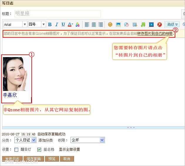寫日志時怎么轉存圖片到自己的貼圖相冊中 ... [更多詳細]
