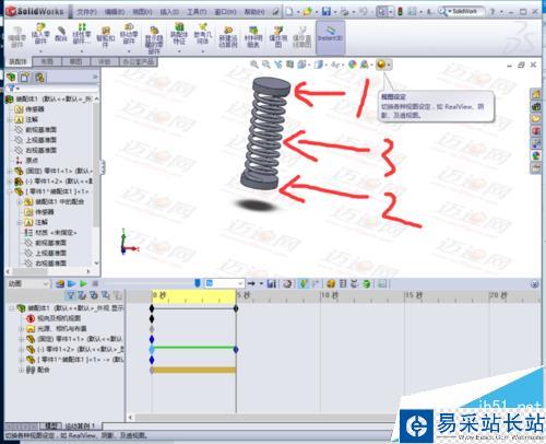 solidworks2010怎么制作彈簧拉伸/壓縮的動畫? ... [更多詳細]