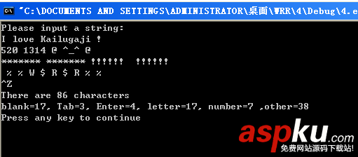 C語言統計一串字符中空格鍵、Tab鍵、回車鍵、字母、數字及其他字符的個數(Ctrl+Z終止輸入) ... [更多詳細]