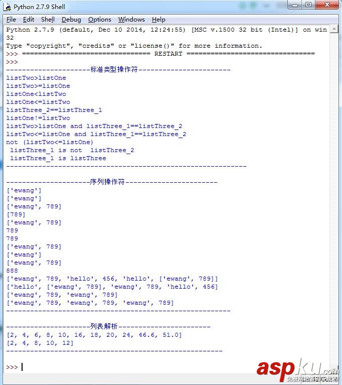 Python列表list操作符實例分析【標準類型操作符、切片、連接字符、列表解析、重復操作等】 ... [更多詳細]