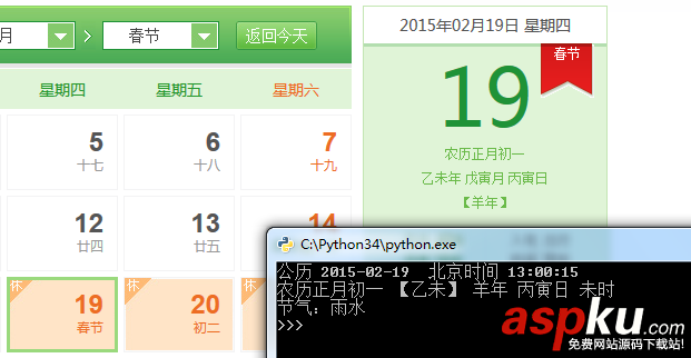 Python實(shí)現(xiàn)公歷(陽(yáng)歷)轉(zhuǎn)農(nóng)歷(陰歷)的方法示例 ... [更多詳細(xì)]