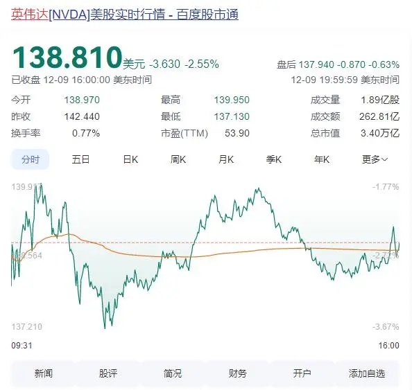 英偉達(dá)美股盤(pán)前跌幅擴(kuò)大至3% 科技
