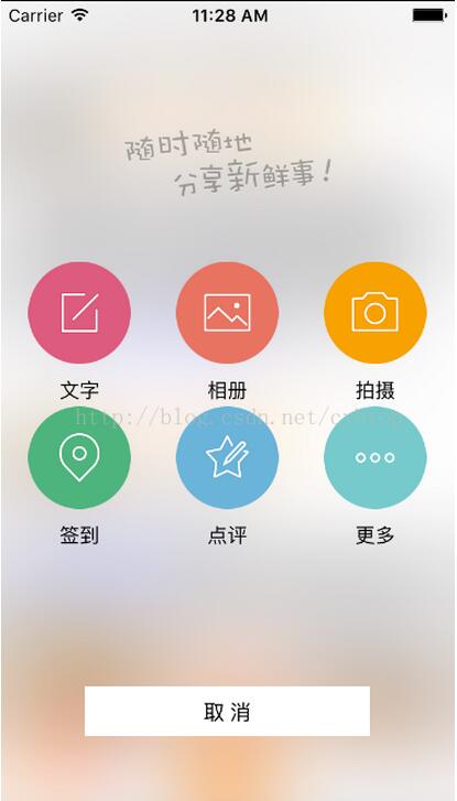 iOS制作帶彈跳動畫發布界面 ... [更多詳細]