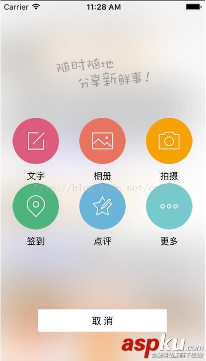 iOS制作帶彈跳動畫發布界面 ... [更多詳細]