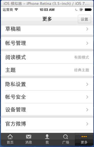 iOS開發之路--微博“更多”頁面 ... [更多詳細]