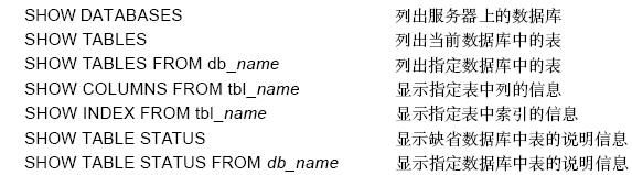 獲取MYSQL數據庫和表的有關信息 ... [更多詳細]
