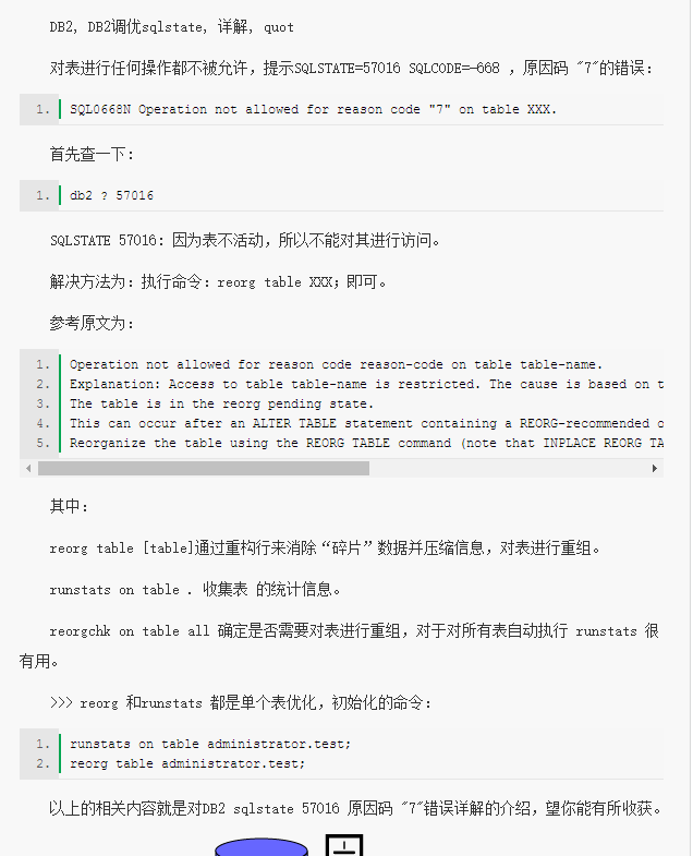 詳解DB2 sqlstate 57016 SQLCODE=-668 原因碼 "7"錯誤的快速解決辦法 ... [更多詳細]
