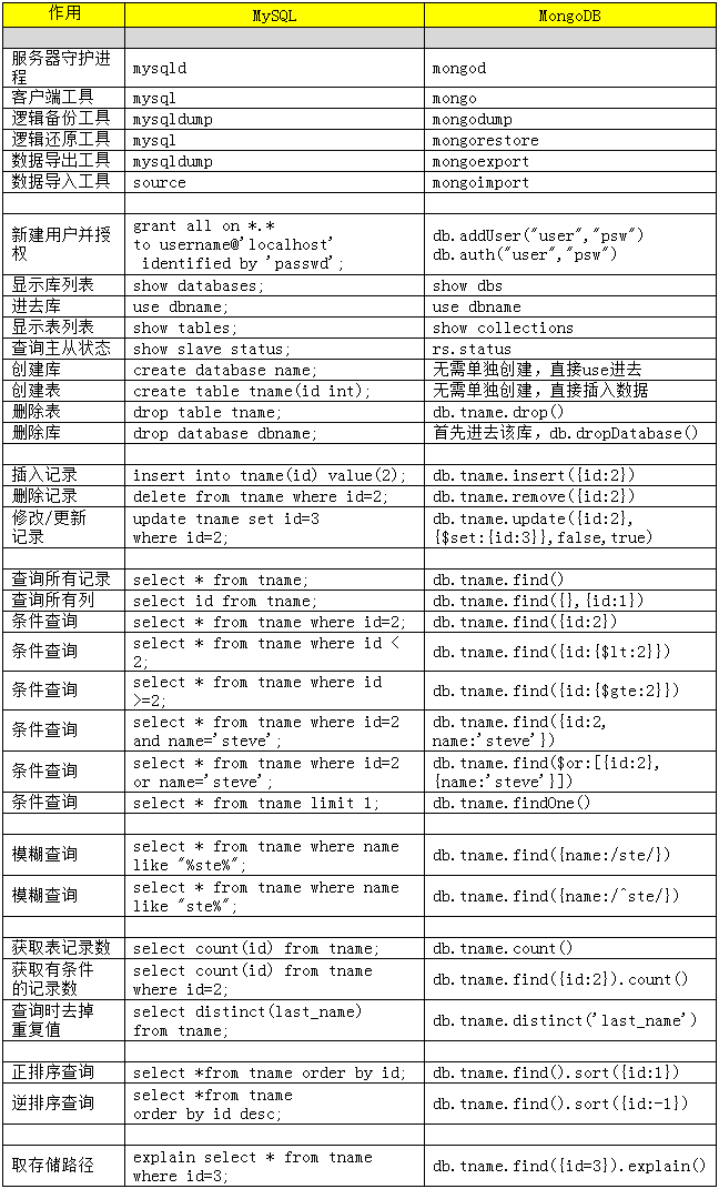 MongoDB與MySQL的操作對比表及區別介紹 ... [更多詳細]