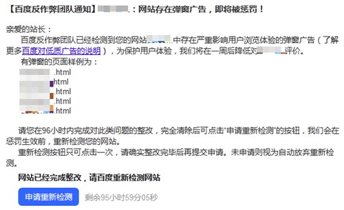 7月中旬百度站長平臺發布消息稱《站點整改反饋功能即將上線》,7月21日發布公告《整改反饋功能上線:首批通知石 ... [更多詳細]