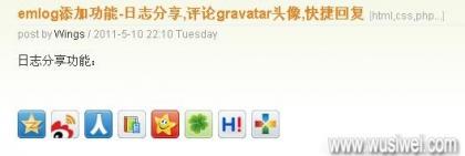 emlog添加功能-日志分享,評(píng)論gravatar頭像,快捷回復(fù)修改方法 ... [更多詳細(xì)]