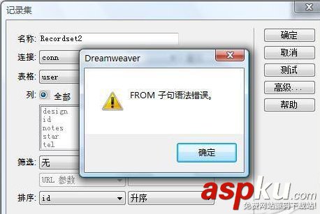 dreamweaver cs4錯誤提示FROM子句語法錯誤的解決方法 ... [更多詳細]