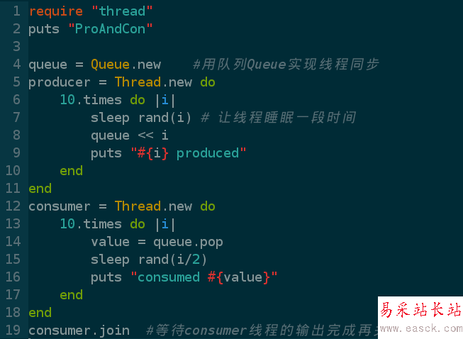 Ruby中用線程實現經典的生產者消費者問題代碼實例 ... [更多詳細]