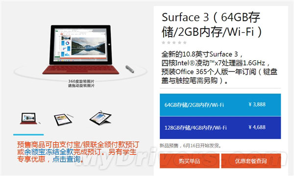 3888元Surface 3國行版于官方商城首發開賣:學生享9折優惠 ... [更多詳細]