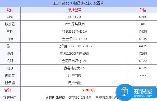 2000元電腦配置單推薦 i3-4170+獨顯GT730K游戲電腦配置介紹 ... [更多詳細]