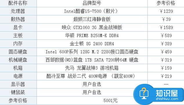 5000元i5-7500配GTX1060主流電腦配置推薦 什么電腦配置玩游戲好 ... [更多詳細]