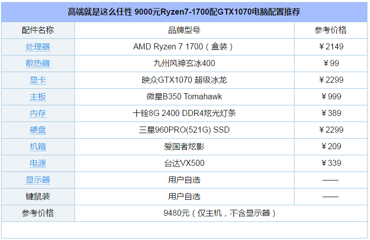 9000元Ryzen7-1700配GTX1070高端電腦配置清單推薦 ... [更多詳細]