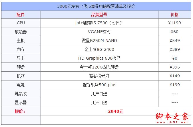 3000元不到intel最新七代i5 7500集顯游戲電腦配置推薦 ... [更多詳細]
