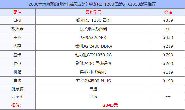 2000元玩游戲組裝電腦怎么配 R3-1200搭配GTX1050配置推薦 ... [更多詳細]