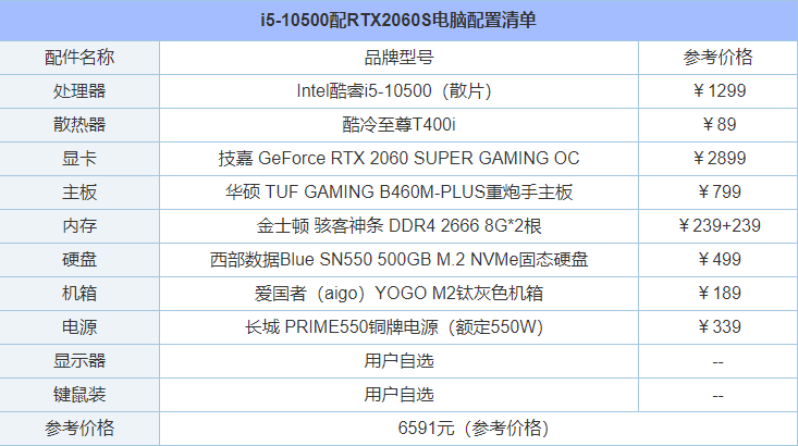 十代酷睿i5-10500配RTX2060Super組裝電腦配置推薦 ... [更多詳細]