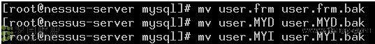 然后我們將知道密碼的mysql庫中user表的三個文件拷貝過來,這時我們可以用ls看到六個user表文件。