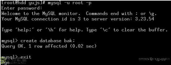 圖四:創(chuàng)建一個bak數(shù)據(jù)庫