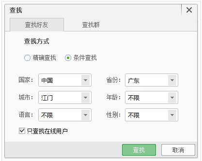 5、設置好查找條件點擊【查找】就會找到你想要的好友。