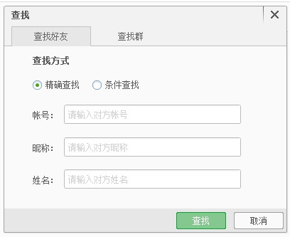 3、發現可以查找好友,也可以查找群,很不錯。如果知道好友的具體的賬號就直接在精確查找里面添加。