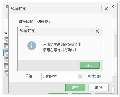 7、好友添加請求發送完畢,等待對方確認是否添加為好友!