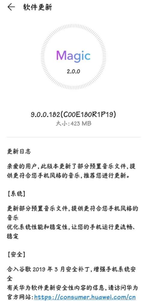 3月27日消息 榮耀Magic2近日推送了9.0.0.182的系統更新,其中系統內置音樂得到了更新,并且新增了華為智慧能力的功能,同時也合入了3月最新的谷歌安全補丁。