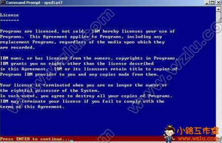 此時會提示用戶軟盤啟動的文件可以重新指引到另外的驅動器,一般不用管它,按回車以查看許可及保證協議: