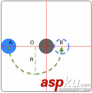 現在基本可以看出主要原理就是讓其中一個圓球繞另一個球做圓弧運動,只要確定一個圓球的運動軌跡,另一個圓球和它左相對運動即可。下面咱們重點說一下這個圓弧運動的原理。