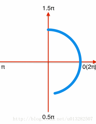 后半段: 從π到1.5π,這一段運(yùn)動(dòng)速度較慢;StartAngle開始變化,從-0.5π變化到1.5π;EndAngle從π變化到1.5π,最后StartAngle和EndAngle重合于1.5π;后半段中圓弧不斷變長(zhǎng),最后直至消失。