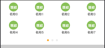 package com.item.jiejie;import java.util.ArrayList;import java.util.List;import com.item.jiejie.adapter.MyGridViewAdpter;import com.item.jiejie.adapter.MyViewPagerAdapter;import android.app.Activity;import android.os.Bundle;import android.support.v4.view.ViewPager;import android.view.View;import android.widget.AdapterView;import android.widget.AdapterView.OnItemClickListener;import android.widget.GridView;import android.widget.ImageView;import android.widget.LinearLayout;import android.widget.Toast;/** * 實(shí)現(xiàn)仿美團(tuán)首頁導(dǎo)航欄布局分頁效果 * @author Administrator * */public class MyActivity extends Activity { private ViewPager viewPager; private LinearLayout group;//圓點(diǎn)指示器 private ImageView[] ivPoints;//小圓點(diǎn)圖片的集合 private int totalPage; //總的頁數(shù) private int mPageSize = 8; //每頁顯示的最大的數(shù)量 private List<ProdctBean> listDatas;//總的數(shù)據(jù)源 private List<View> viewPagerList;//GridView作為一個(gè)View對(duì)象添加到ViewPager集合中 //private int currentPage;//當(dāng)前頁 private String[] proName = {"名稱0","名稱1","名稱2","名稱3","名稱4","名稱5", "名稱6","名稱7","名稱8","名稱9","名稱10","名稱11","名稱12","名稱13", "名稱14","名稱15","名稱16","名稱17","名稱18","名稱19"}; @Override protected void onCreate(Bundle savedInstanceState) { // TODO Auto-generated method stub super.onCreate(savedInstanceState); setContentView(R.layout.activity_my); //初始化控件 initView(); //添加業(yè)務(wù)邏輯 initData(); } private void initView() { // TODO Auto-generated method stub viewPager = (ViewPager)findViewById(R.id.viewpager); group = (LinearLayout)findViewById(R.id.points); listDatas = new ArrayList<ProdctBean>(); for(int i =0 ; i < proName.length; i++){ listDatas.add(new ProdctBean(proName[i], R.drawable.iv_driving)); } } private void initData() { // TODO Auto-generated method stub //總的頁數(shù)向上取整 totalPage = (int) Math.ceil(listDatas.size() * 1.0 / mPageSize); viewPagerList = new ArrayList<View>(); for(int i = 0; i < totalPage; i++){ //每個(gè)頁面都是inflate出一個(gè)新實(shí)例 final GridView gridView = (GridView)View.inflate(this, R.layout.item_gridview, null); gridView.setAdapter(new MyGridViewAdpter(this, listDatas, i, mPageSize)); //添加item點(diǎn)擊監(jiān)聽 gridView.setOnItemClickListener(new OnItemClickListener() { @Override public void onItemClick(AdapterView<?> arg0, View arg1, int position, long arg3) { // TODO Auto-generated method stub Object obj = gridView.getItemAtPosition(position); if(obj != null && obj instanceof ProdctBean){ System.out.println(obj); Toast.makeText(MyActivity.this, ((ProdctBean)obj).getName(), Toast.LENGTH_SHORT).show(); } } }); //每一個(gè)GridView作為一個(gè)View對(duì)象添加到ViewPager集合中 viewPagerList.add(gridView); } //設(shè)置ViewPager適配器 viewPager.setAdapter(new MyViewPagerAdapter(viewPagerList)); //添加小圓點(diǎn) ivPoints = new ImageView[totalPage]; for(int i = 0; i < totalPage; i++){ //循壞加入點(diǎn)點(diǎn)圖片組 ivPoints[i] = new ImageView(this); if(i==0){ ivPoints[i].setImageResource(R.drawable.page_focuese); }else { ivPoints[i].setImageResource(R.drawable.page_unfocused); } ivPoints[i].setPadding(8, 8, 8, 8); group.addView(ivPoints[i]); } //設(shè)置ViewPager的滑動(dòng)監(jiān)聽,主要是設(shè)置點(diǎn)點(diǎn)的背景顏色的改變 viewPager.setOnPageChangeListener(new ViewPager.SimpleOnPageChangeListener(){ @Override public void onPageSelected(int position) { // TODO Auto-generated method stub //currentPage = position; for(int i=0 ; i < totalPage; i++){ if(i == position){ ivPoints[i].setImageResource(R.drawable.page_focuese); }else { ivPoints[i].setImageResource(R.drawable.page_unfocused); } } } }); }}6.ViewPage的適配器代碼
