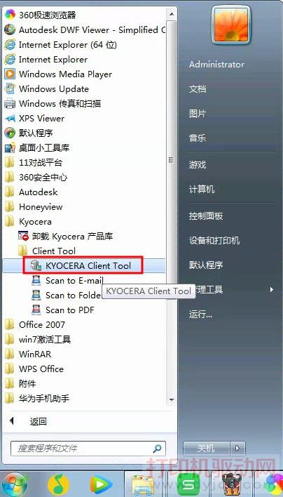 1、安裝完 京瓷 FS-1020MFP 驅(qū)動以后,打開Kyocera客戶端軟件,依次點擊“開始 —— 所有程序 —— Kyocera —— KYOCERA Client Tool”