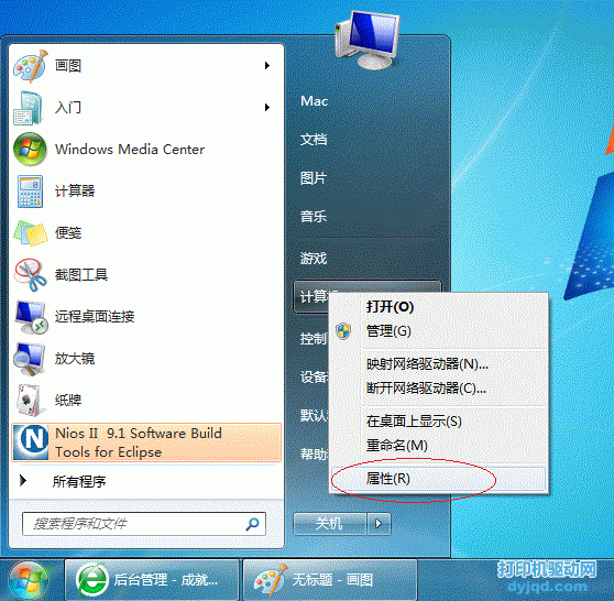 1. 在開始菜單欄或桌面上找到計算機,在【計算機】上右鍵,選擇【屬性】,如下圖: