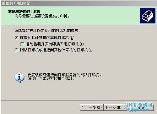2.在彈出的打印機安裝向導窗口中,用鼠標單擊“ ”按鈕,如下圖所示。