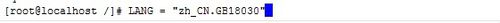 輸入命令:LANG = "zh_CN.GB18030"(注意=號前后空格去掉)
