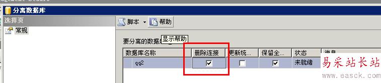 在分離前最好是先把IIS之類的正在連接數據庫的程序關一下,要不然老半天也分離不了。