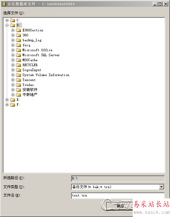 注意文件名記得加后綴.bak,便于恢復時的查找