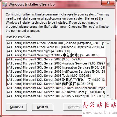用Windows Install Clean Up工具卸載sql的所有組件。