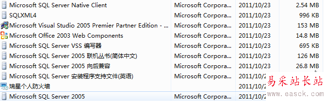 開始——>控制面板——>卸載或更改程序,看下圖有關sql2005的程序大小,按照從小到大的順序卸載以下程序。