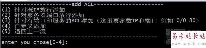 echo "(3) 針對有端口和服務的ACL添加(這里要參數IP和端口 例如 0/0 80)"
