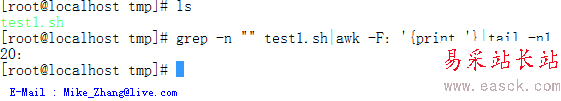 grep -n "" test1.sh|awk -F: '{print '}|tail -n1
