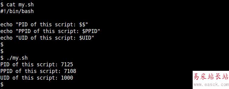 在bash中,子shell進程的PID存儲在一個特殊的變量‘$$'中。這個變量只讀,你不可以在腳本中修改它。比如:
