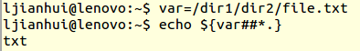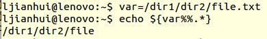 該命令的作用是去掉變量var從左邊算起的最后一個'.'字符及其左邊的內(nèi)容,返回從左邊算起的最后一個'.'(不含該字符)的右邊的內(nèi)容。使用例子及結(jié)果如下: